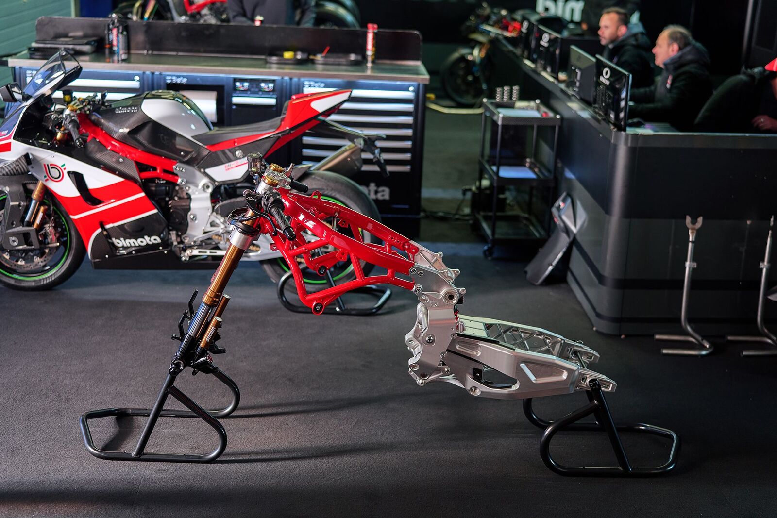 Laut Pierluigi Marconi, Chief Operating Officer von bimota, werden die ersten Maschinen schon bald in den Ausstellungsräumen stehen: „Wir haben uns auf die Produktion der KB998-Rimini-Kundenmaschinen konzentriert, gleich nachdem die Rennversionen für BbKRT für die WorldSBK entwickelt worden waren. Um die Fertigung der Kundenmaschinen haben sich dieselben Mechaniker gekümmert, die auch die Rennmaschinen gebaut hatten. Jedes bei einem bimota-Händler erhältliche Exemplar der KB998 wurde in unserer Werkstatt in Rimini handgefertigt und ist vom Anfang bis zum Ende des Fertigungsprozesses das Produkt einer einzigen Person. Wir bleiben damit der bimota-Philosophie von Innovation und handgefertigter Qualität treu–das erwarten die Kunden exklusiver Motorräder. Auf deren Feedback im April freuen wir uns bereits.“