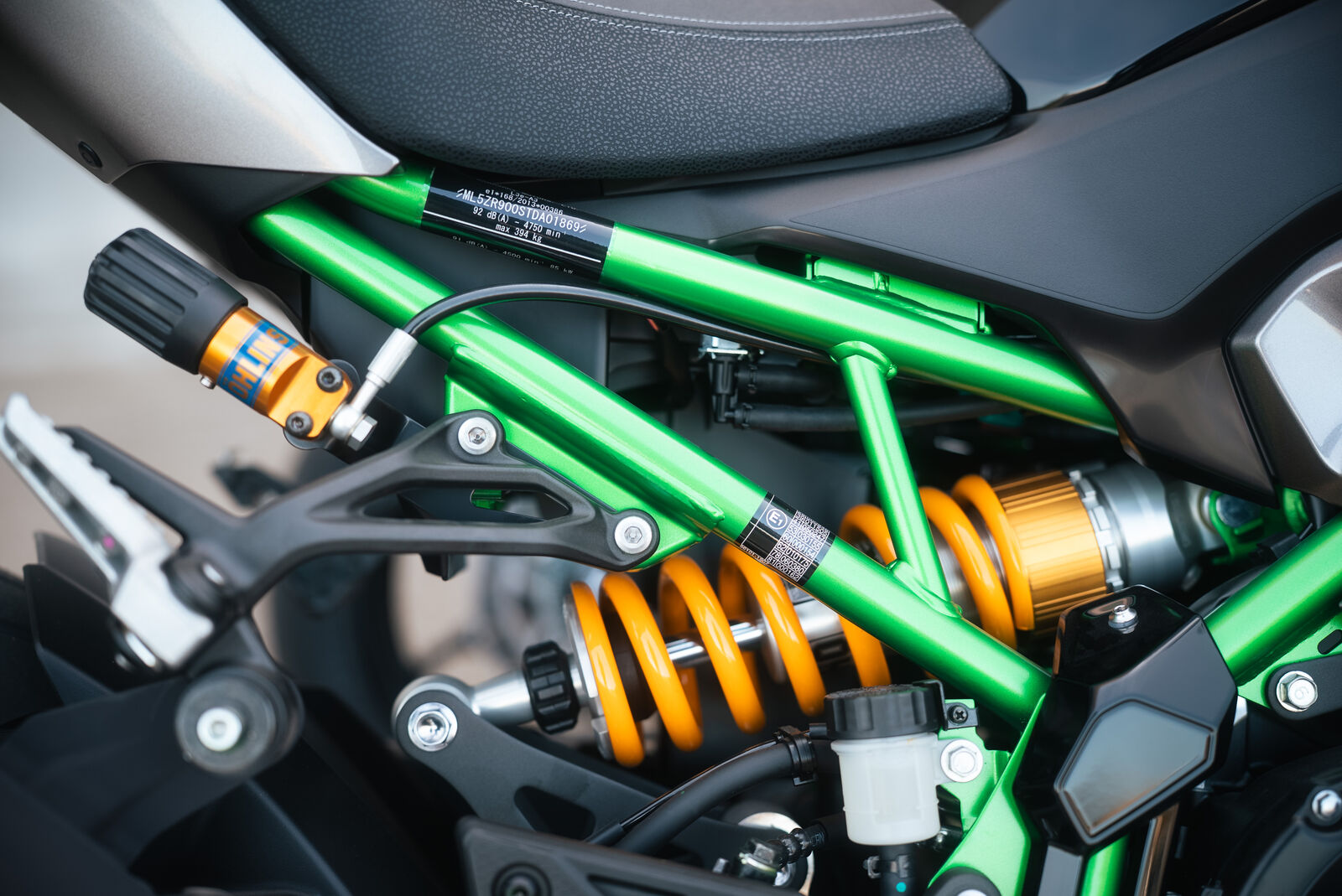 Das Fahrwerk ist ein entscheidendes Element bei Motorradfahrzeugen, und hier zeigen sich die wesentlichen Unterschiede zwischen der Standard- und der SE-Version der Z900. Während die Standardversion mit einem Kayaba-Fahrwerk ausgestattet ist, erhält die SE-Version eine hochwertige Showa-Gabel und ein Öhlins S46-Federbein. Diese Änderungen sorgen für ein deutlich verbessertes Fahrverhalten, besonders in Kurven und bei höheren Geschwindigkeiten.