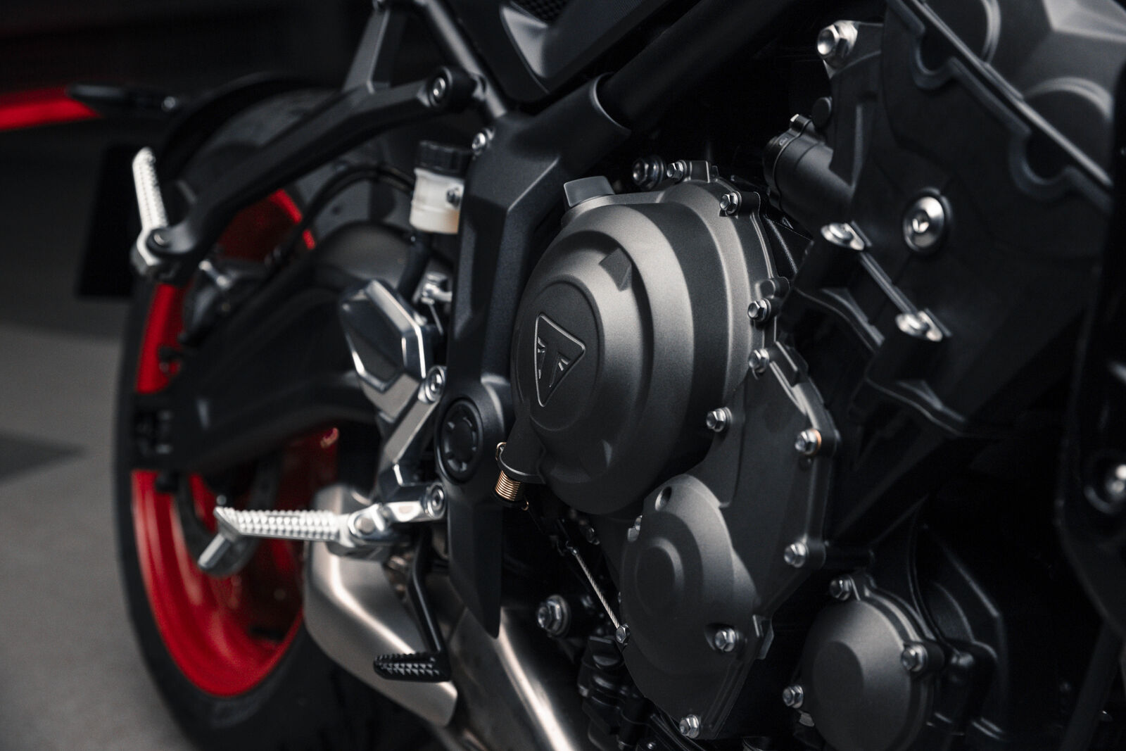 Der speziell für die Trident abgestimmte Dreizylinder-Motor der Trident 660 erfüllt die Euro 5+-Norm und liefert eine Spitzenleistung von 81 PS bei 10.250 U/min sowie ein maximales Drehmoment von 64 Nm bei 6.250 U/min. Dies sorgt für eine gleichmäßige und reaktionsschnelle Leistungsabgabe in allen Drehzahlbereichen. Die lineare Drehmomentkurve und die Ride-by-Wire-Drosselklappe sorgen für eine intuitive Leistungsentfaltung, egal ob im Stadtverkehr oder auf der Landstraße.