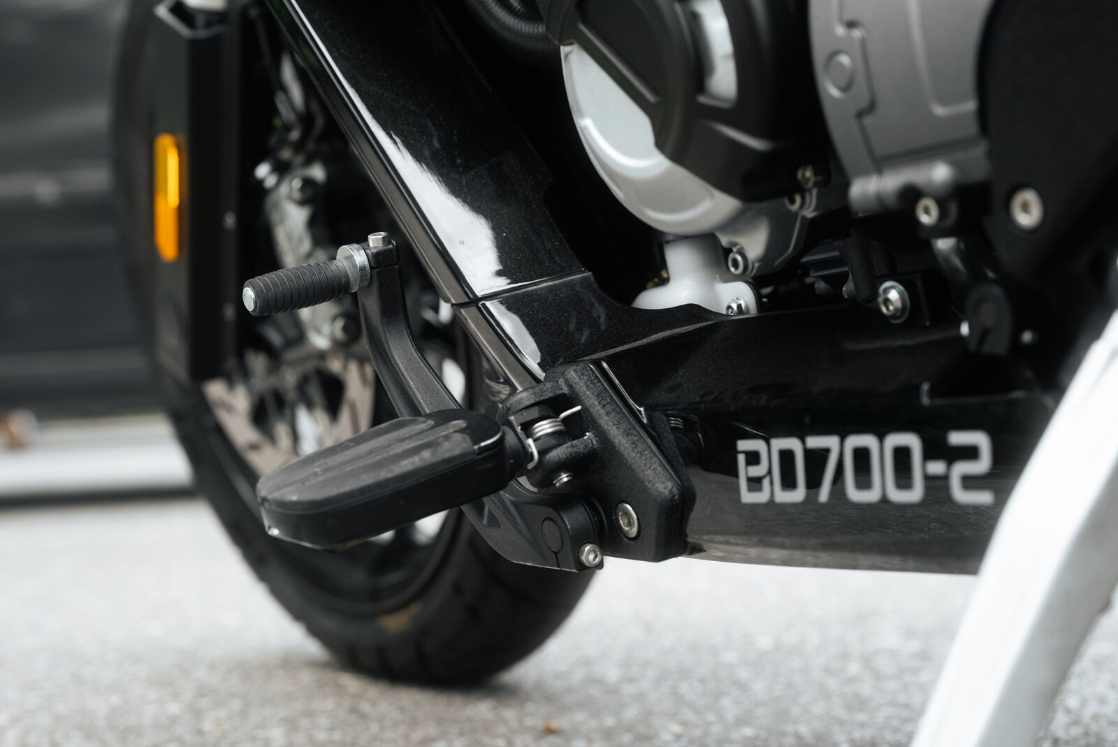 Der Vierzylindermotor der Benda LFC 700 kommt mit einer Leistung von 77 PS bei 10.500 Umdrehungen und einem maximalen Drehmoment von 60 Nm bei 8.600 Umdrehungen. Diese Leistungsdaten sind für einen Cruiser eher ungewöhnlich und versprechen ein anderes Fahrgefühl als die typischen V-Motoren, die man in dieser Kategorie gewohnt ist. Die Kombination aus einem 17-Liter-Tank und einem Leergewicht von 287 Kilogramm sorgt für eine solide Reichweite, ohne dass man sich über häufiges Tanken Gedanken machen muss. Die Gasannahme ist direkt und ermöglicht eine präzise Kontrolle, was beim Fahren auf Landstraßen zu einem sportlichen Erlebnis führt. Allerdings könnte die Übersetzung der Gänge für einige Fahrer etwas länger sein, um auch bei höheren Geschwindigkeiten mehr Fahrfreude zu bieten. Die Benda LFC 700 ist A2-konform, was bedeutet, dass auch weniger erfahrene Fahrer oder solche mit A2-Führerschein in den Genuss dieses besonderen Cruisers kommen können.
