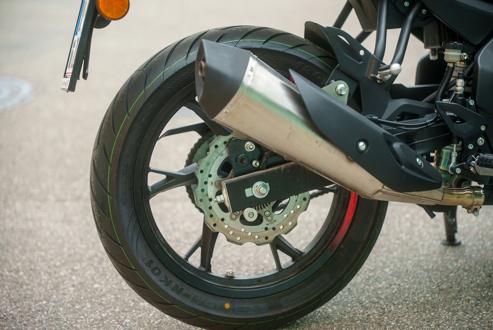 Der Sitzkomfort der QJ Motor SRK 125 ist angenehm, und du sitzt aufrecht, was gerade auf längeren Fahrten von Vorteil ist. Die Position der Lenker ist ergonomisch und sorgt dafür, dass du dich wohlfühlst, auch wenn du die Maschine länger fährst. Die Federung zeigt sich neutral, jedoch könnte das Handling beim Kurvenfahren etwas geschmeidiger sein. Im Test hat sich die SRK 125 als wendig und leicht zu manövrieren erwiesen, was sie perfekt für den Stadtverkehr macht. Dennoch ist sie kein Hochleistungs-Sportbike, sondern eher eine solide Wahl für Einsteiger, die ein Naked Bike für den Alltag suchen. Die Bremsen sind in Ordnung, könnten jedoch etwas mehr Feedback geben, was sich durch den Austausch der Bremsbeläge leicht verbessern lässt.