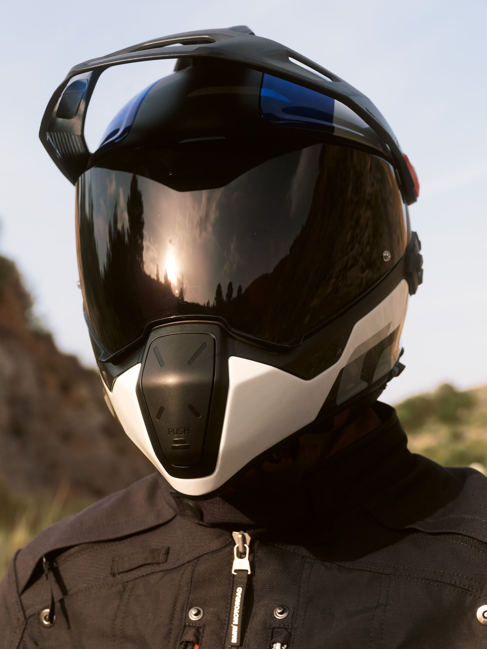 Akku und Main Unit befindet sich unter einer rückseitigen Abdeckung und das Bedienungs-Panel ist linksseitig in einer Aussparung in das Helmdesign intergiert. Die Batterie und die 2 seitlich angeordneten Antennen sind unsichtbar und gut geschützt ins Helm-Design integriert. Kurzum: Ein robustes, intuitives und optimal integriertes System, das perfekt auf die Bedürfnisse von GS-Fahrern abgestimmt ist und eine nahtlose funktionale Integration in den Connectivity Hub bietet.