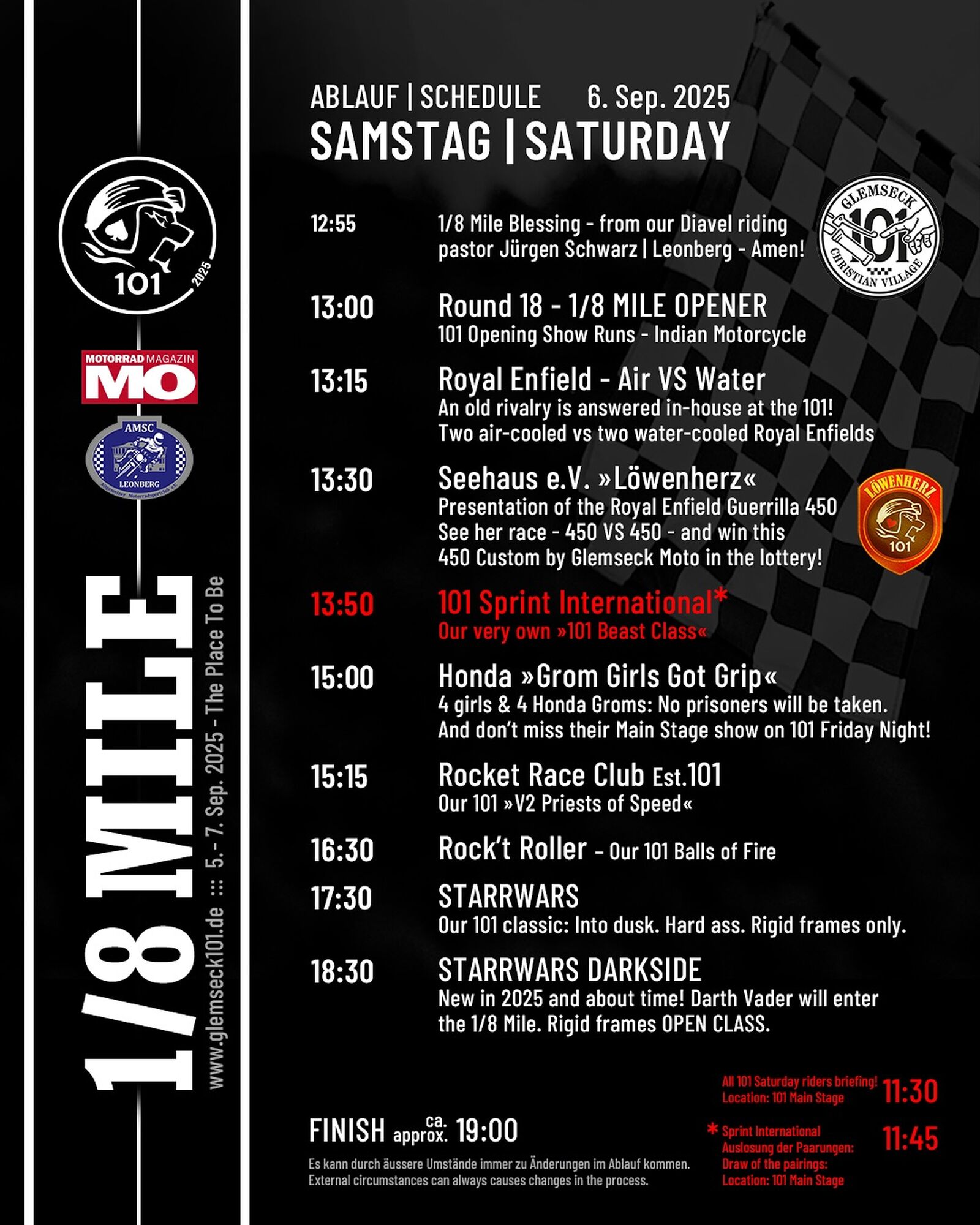 Ein besonderes Highlight des Festivals ist auch in diesem Jahr die große Glemseck 101 Verlosung zugunsten von Seehaus e. V., einer Organisation, die sich für Resozialisierungs- und Präventionsprojekte engagiert. Mit dem Kauf eines Loses unterstützen Besucherinnen und Besucher nicht nur einen guten Zweck, sondern haben auch die Chance auf attraktive Gewinne. Kawasaki steuert wertvolle Gewinne bei, darunter ein exklusives Kawasaki WSBK Balance-Bike sowie die detailgetreue LEGO Technic Kawasaki Ninja H2R – ein faszinierendes 1:8-Modell mit funktionierender Lenkung, Federung, 2‑Gang‑Getriebe und vier‑Kolben‑Motor im Miniaturformat. Damit verbindet sich die Faszination Motorradfahren auf einzigartige Weise mit sozialem Engagement – ein Gewinn für alle Beteiligten. Das Glemseck 101 findet vom 05. bis 07. September 2025 an der ehemaligen Solitude-Rennstrecke in Leonberg statt. Weitere Informationen zur Veranstaltung, zum Programm und zur einzigartigen Atmosphäre dieses Motorradfestivals sind unter www.glemseck101.de abrufbar.