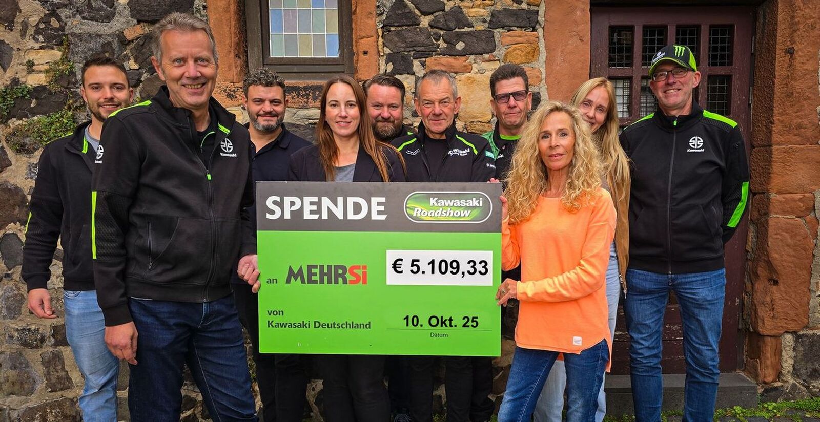 Die Kawasaki Deutschland Roadshow 2025 war erneut ein großer Erfolg und kombinierte Motorradleidenschaft mit sozialem Engagement. Auf ihrer deutschlandweiten Tour bot sie zahlreichen Motorradfans die Möglichkeit, aktuelle Kawasaki-Modelle zu testen – die erste Probefahrt kostenlos, jede weitere gegen eine Spende von 10 Euro zugunsten der Organisation MEHRSi (Mehr Sicherheit für Biker). Insgesamt kamen so 5.109,33 Euro zusammen, die an Monika Schwill, Gründerin und Geschäftsführerin von MEHRSi, übergeben wurden. Seit 2020 konnte Kawasaki damit bereits über 35.000 Euro für die Organisation sammeln, die sich für die Sicherheit von Motorradfahrenden einsetzt – insbesondere durch den Einbau von Unterfahrschutz-Systemen an Leitplanken. Monika Schwill zeigte sich dankbar für die kontinuierliche Unterstützung aus der Biker-Community, und auch Kawasaki-Marketingleiter Martin Driehaus betonte die Bedeutung des Projekts. Die Roadshow stehe für Gemeinschaft, Fahrspaß und nun auch für gelebte Verantwortung. Die Aktion beweist eindrucksvoll, dass Motorradfahren und soziales Engagement Hand in Hand gehen können.