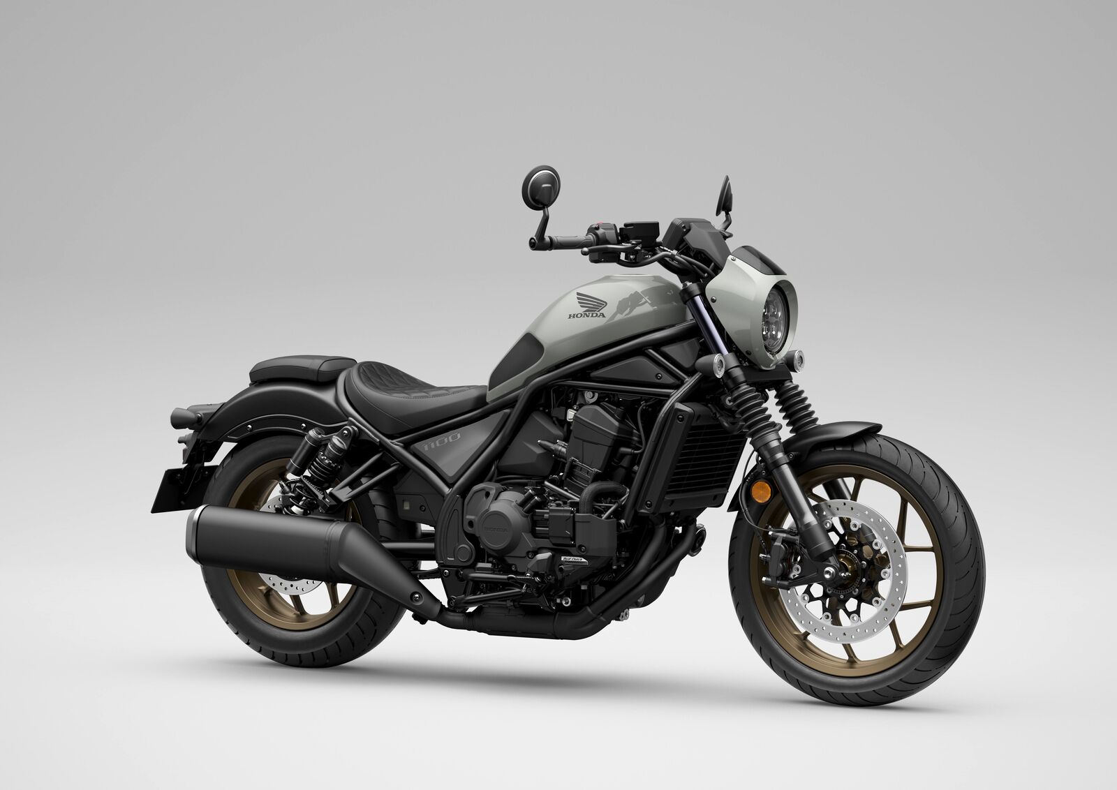 Auch bei der Ausstattung setzt Honda auf moderne Technik und hochwertige Komponenten: Serienmäßig verfügen alle Modelle über ein elektronisches Gasgriffsystem (Throttle by Wire), verschiedene Fahrmodi, eine HSTC-Traktionskontrolle sowie einen fünf Zoll großen TFT-Farbbildschirm mit Honda RoadSync-Konnektivität für smarte Funktionen. Für 2026 hat Honda zudem die Farbpalette gezielt erweitert, um den individuellen Charakter jedes Modells noch besser zur Geltung zu bringen. Die Standard-CMX1100 Rebel wird in der neuen Farbe Mat Beta Silver Metallic sowie in Mat Ballistic Black Metallic angeboten. Die Sonderedition CMX1100T SE DCT Rebel ist ebenfalls in zwei attraktiven Farben erhältlich: dem neuen Pearl Deep Mud Gray sowie ebenfalls in Mat Ballistic Black Metallic. Ergänzend dazu bleibt die CMX1100T Rebel in der bisherigen Farbe Iridium Gray Metallic verfügbar – und bietet damit weiterhin eine elegante Option für Freunde klassischer Cruiser-Optik.