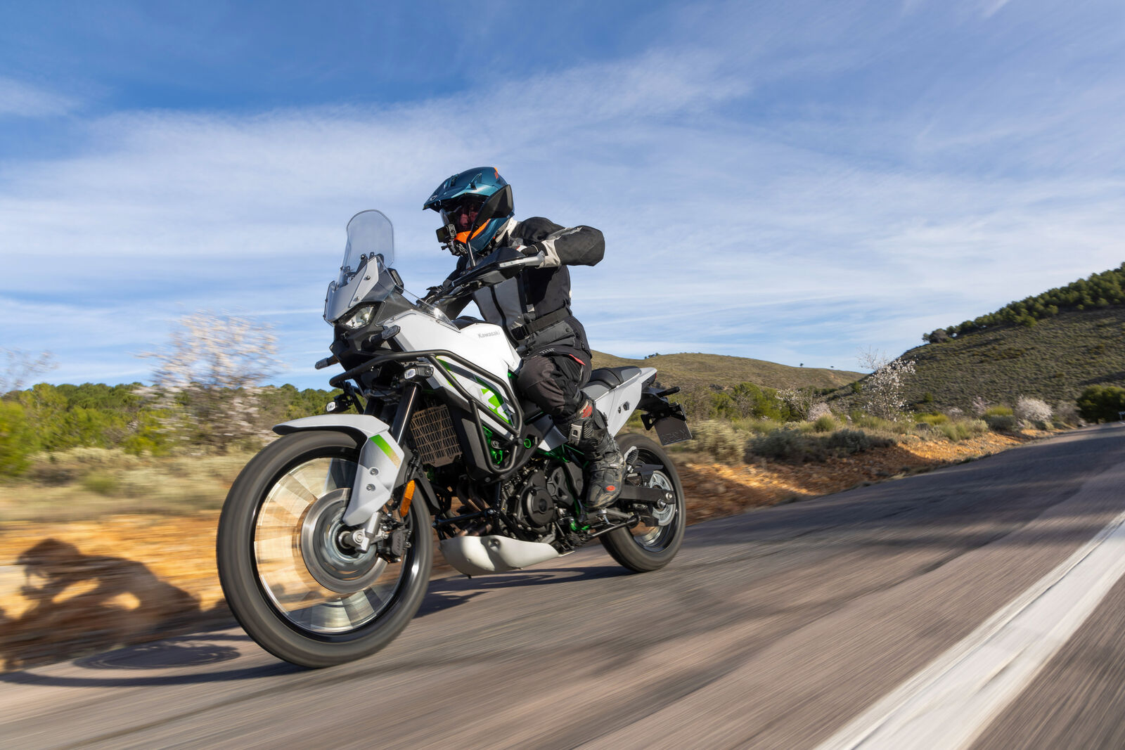 Optisch ist die KLE ein wahr gewordener Traum, doch faktisch ist sie anders als viele da draußen erwarten würden und auch ist es kein echter Konkurrent zur 450 MT oder zur NX500. Sie lebt irgendwie zwischen zwei Welten und das, was man am ehesten damit vergleichen könnte, wäre vielleicht die BMW, wenn man ehrlich ist. Sie setzt die Welt der leichten Adventure Bikes mit hohem Straßenfokus und genau da setzt sie sich hinein. Man muss ganz ehrlich sagen, die zwei großen und starken Argumente sind aus meiner Sicht einerseits ein starkes Händlernetz und eine starke Ersatzteilversorgung in Kombination mit einer extrem einfachen Zugänglichkeit. Dieses Motorrad hier hinter mir war eins, auf das ich mich richtig gefreut habe und heute erfahrt ihr, warum und ob sich wirklich lohnt dieses Motorrad Probe zu fahren. War das ein Fahrspaß heute mitten in Spanien durch die einzige Wüste aus Europa an Szenarien vorbei, wo Indiana Jones gedreht wurde und auch Jack Sparrow gedreht wurde. Also wirklich viel erlebt.