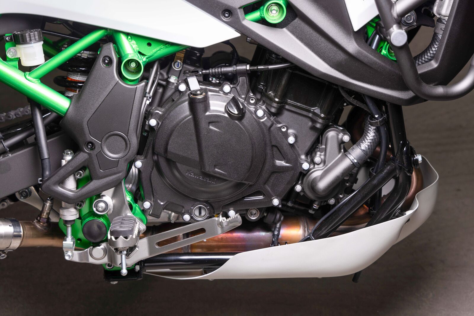 Was man auch sagen muss, der Motor ist hier extrem tief verbaut. Das bringt uns einige Probleme, bringt aber auch einen extrem niedrigen Schwerpunkt vom Motorrad und vor allem auch eine niedrige Sitzhöhe, wo halt jeder runterkommt. Die Bodenfreiheit ist gerade mal 185 mm. Das sind zwar um 5 mm mehr als bei der Honda NX, aber natürlich deutlich weniger als bei den Mitbewerbern und deutlich weniger als bei anderen Motorrädern. Die Sitzhöhe ist ziemlich niedrig mit 870 mm und es gibt vier verschiedene Sitzbankoptionen. Das Gewicht in der Standard ist 194 kg und in der SE ist es 195 kg. Trotzdem sieht man auch hier wieder, die NX500 ist da durchaus auch ein bisschen getargetet worden. In Summe ist er unten raus spritziger auf jeden Fall als die Orangen und vor allem wahrscheinlich auch spritziger als die Roten. Kawasaki zeigt halt, dass man mit einem Parallel Zweizylinder wirklich Fahrspaß erzeugen kann.