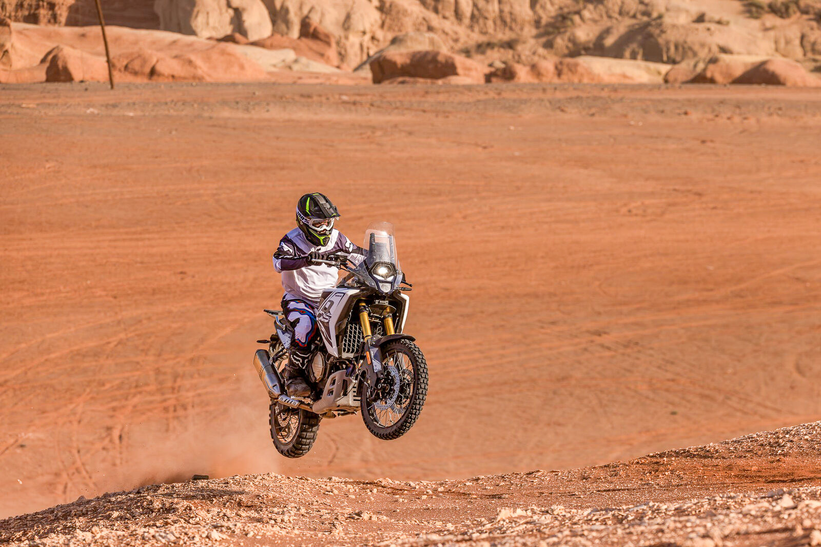 Auf der Straße zeigt sich schnell: Dieses Motorrad ist ein echtes Offroad-Monster, das Asphaltfahrern einiges abverlangt. Die Gabel vorne ist weich, die Kurvenstabilität leidet etwas, dafür glänzt das Bike auf unebenem Untergrund. Rally-Vibes pur, unterstützt durch breiten Lenker, riesigen Tank und hochwertiges Display. ABS lässt sich in drei Stufen regeln, und die Bedienung ist intuitiv, selbst ohne Quickshifter macht das Schalten Spaß. Auffällig ist der tief platzierte Unterfahrschutz, der beim Gelände-Einsatz geschützt werden sollte, sonst drohen Schäden. Trotz dieser kleinen Einschränkungen vermittelt das Bike ein Gefühl von Kontrolle und Kraft, das Rally-Fans sofort begeistern wird. Die Kombination aus robustem Fahrwerk, großzügigen Federwegen und Premium-Ausstattung sorgt dafür, dass jede Fahrt ein echtes Erlebnis wird, egal ob auf der Straße, Landstraße oder im Gelände.