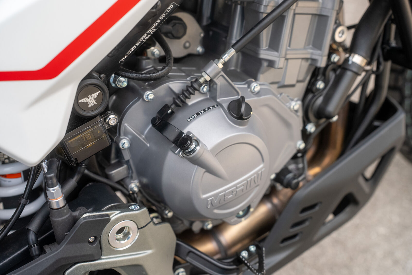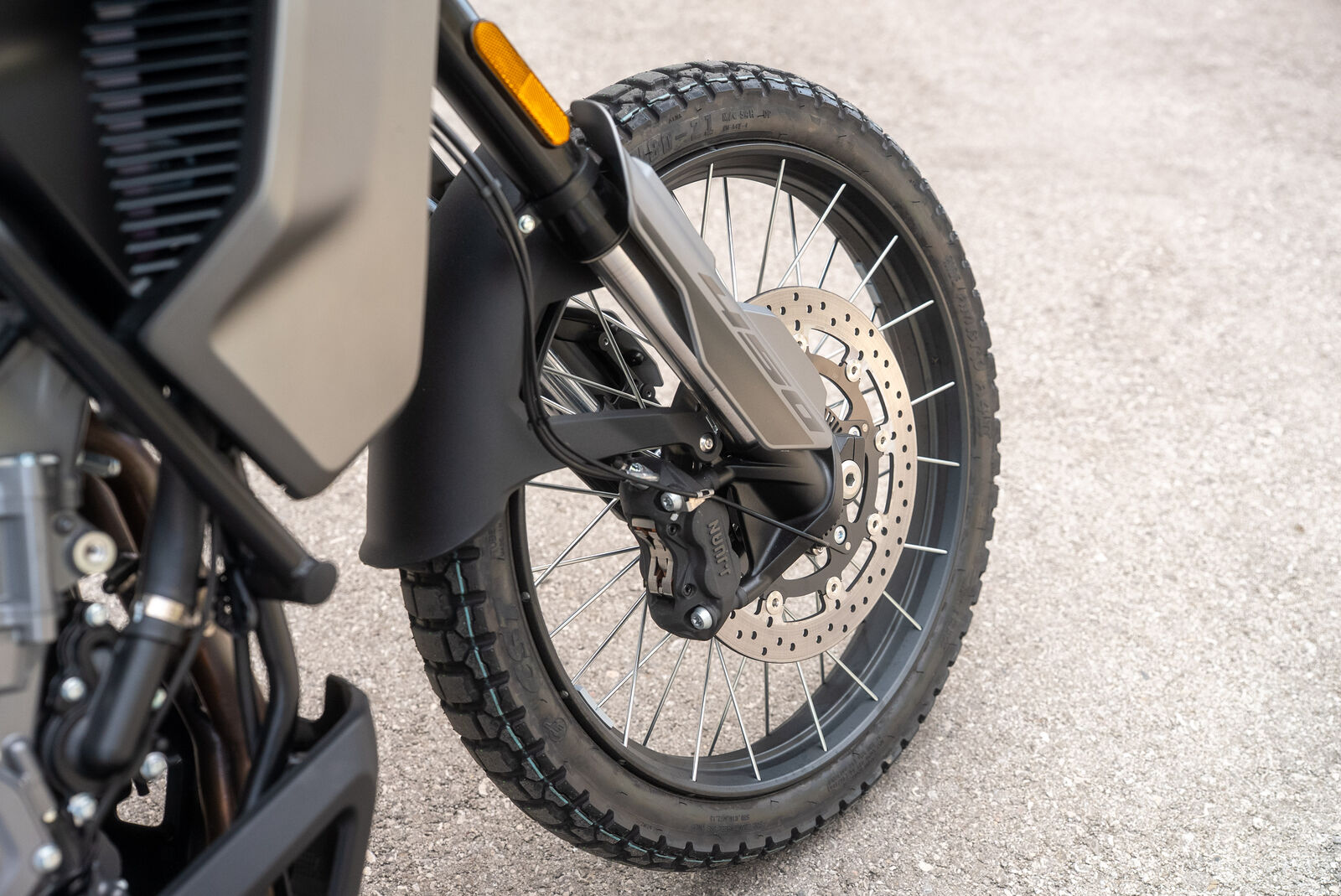 Kaum im Sattel, zeigt sich die wahre Stärke der Maschine: ihre Dynamik. Die Sitzposition ist angenehm aufrecht, der breite Lenker sorgt für Kontrolle, und das Fahrwerk spielt auf einem Niveau, das man in dieser Preisklasse nicht erwartet. Mit 208 kg fahrfertig und einem großzügigen 18,5-Liter-Tank wirkt sie erstaunlich agil. Die Kombination aus 21-Zoll-Vorderrad und 18-Zoll-Hinterrad sowie 208 mm Federweg vorne und 190 mm hinten macht klar: Diese Maschine will auch abseits der Straße bewegt werden. Die Kayaba-Upside-Down-Gabel und das einstellbare Mono-Federbein liefern ein sauberes Feedback – egal ob auf Asphalt oder Schotter. Besonders beeindruckend ist das neutrale Einlenkverhalten trotz langem Radstand von 1.525 mm. Selbst beim harten Anbremsen bleibt sie stabil und berechenbar. Der Motor trägt seinen Teil dazu bei: Er hängt direkt am Gas, beschleunigt in jeder Lage sauber und sorgt für echten Fahrspaß. Topgeschwindigkeiten um 150 km/h sind drin, aber es ist vor allem die Art, wie sie dahin kommt, die begeistert.