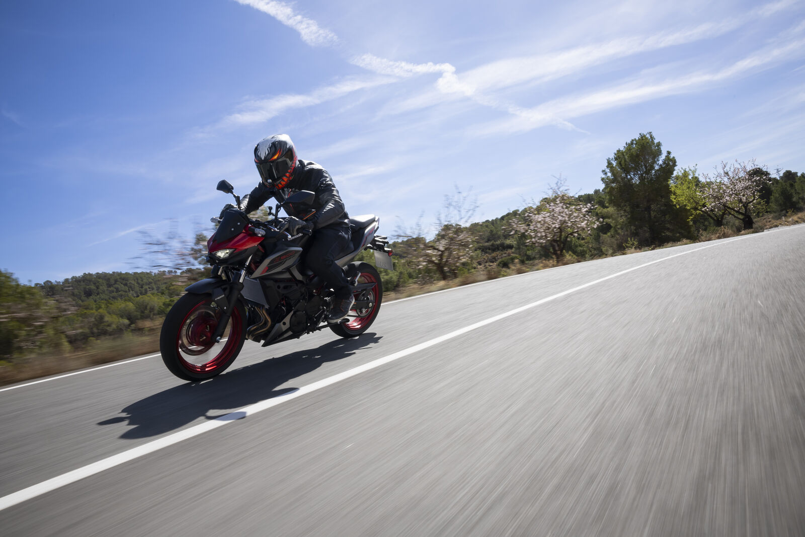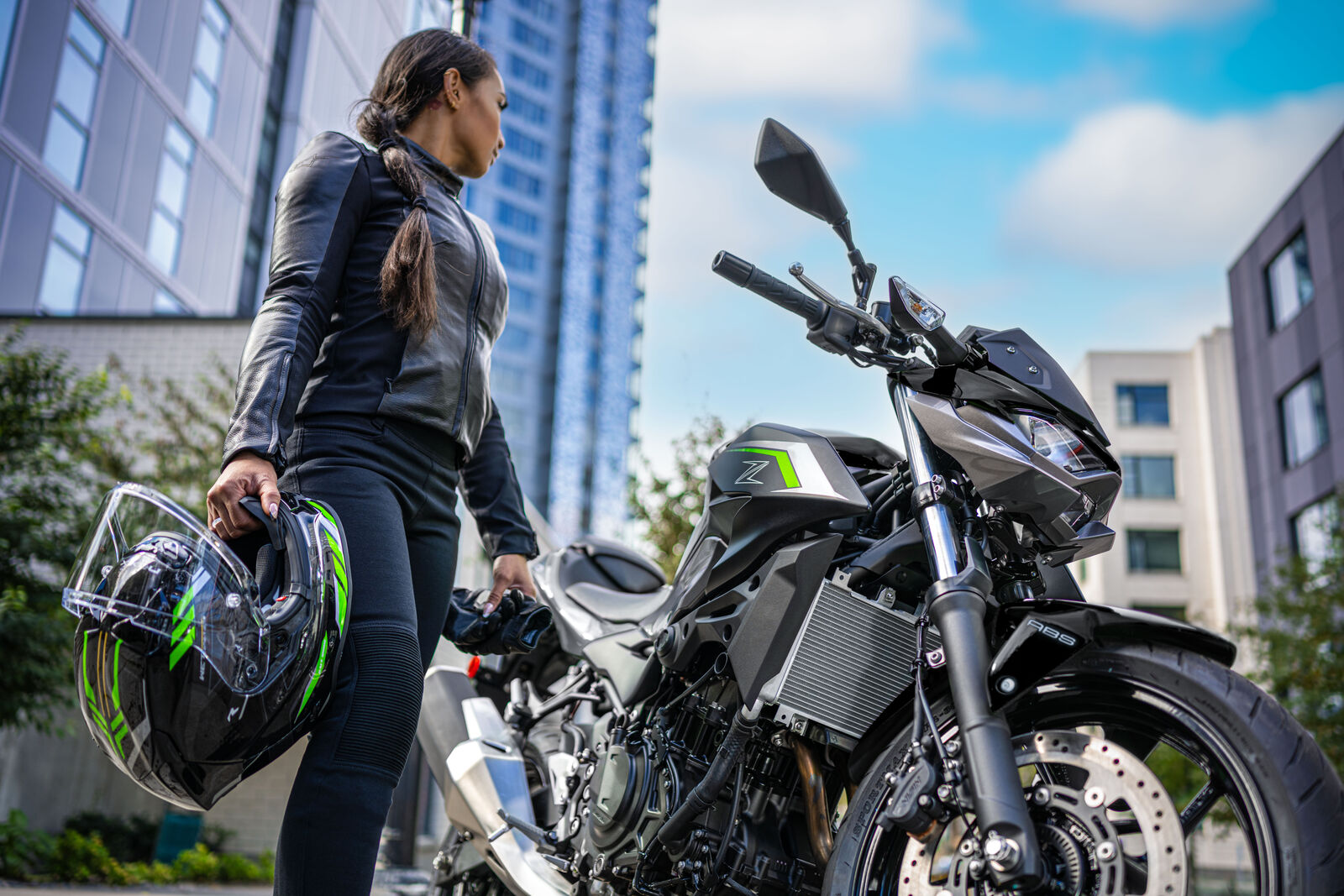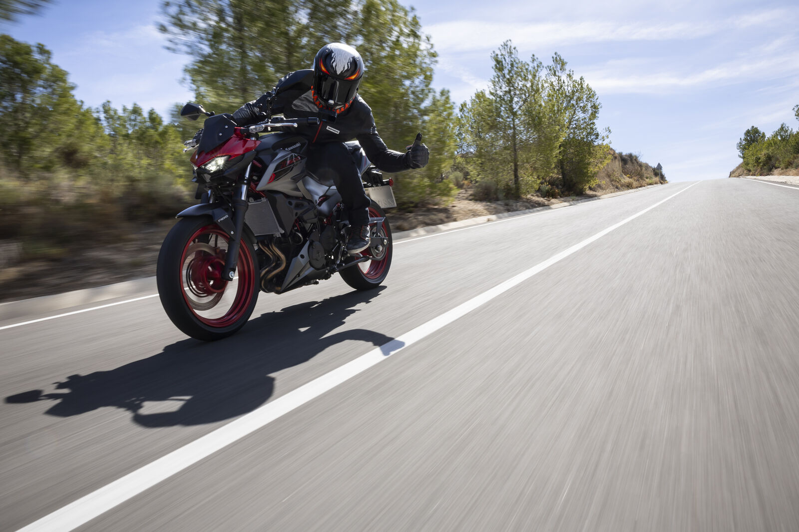Ein Bike zu fahren, das sich so spielerisch und agil anfühlt, ist eine wahre Freude. Die Z500 meistert jede Alltagssituation mit Bravour und ist auch für längere Touren bestens gerüstet. Dank des perfekt abgestimmten Fahrwerks, welches sogar ohne Upside-Down Gabel auskommt, bietet sie ein Fahrgefühl, das seinesgleichen sucht. Für die Feinabstimmung lässt sich das Federbein in fünf Stufen einstellen. Wer also an diesem Fahrwerk etwas auszusetzen hat, dem kann ich nur schwer folgen. Und wenn wir schon bei der Ergonomie sind: Die Z500 bietet auch größeren Fahrern eine angenehme Sitzposition, während die niedrige Sitzhöhe und der schmale Schrittbogen für eine hervorragende Zugänglichkeit sorgen.