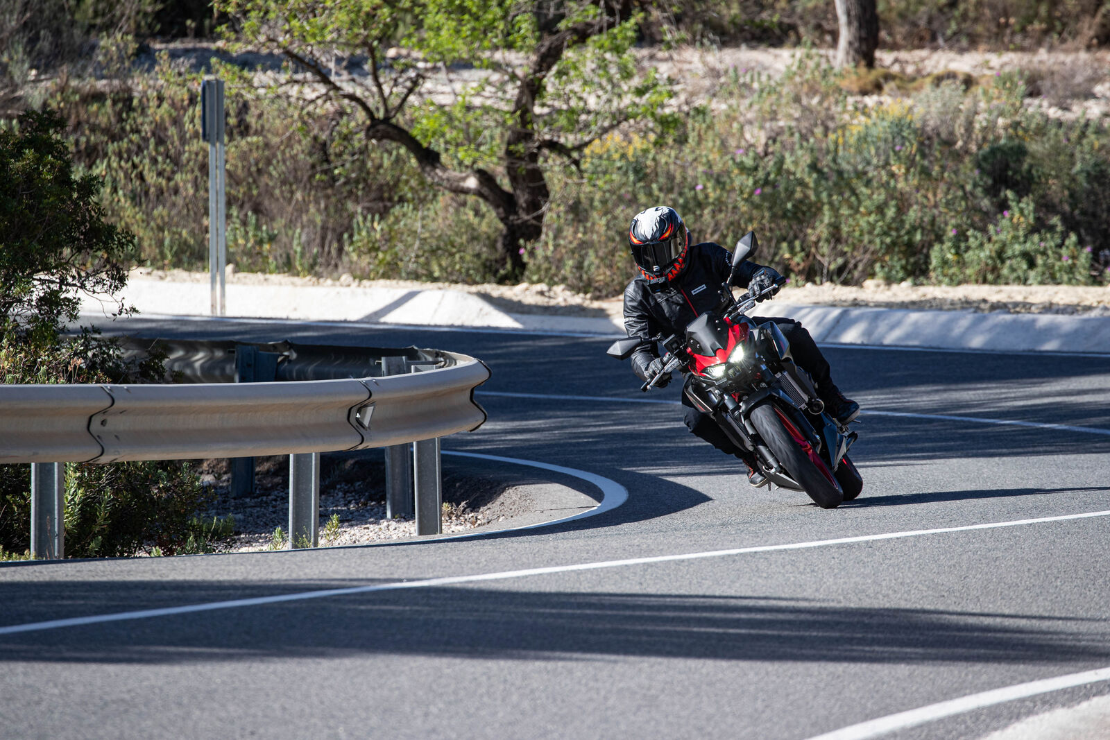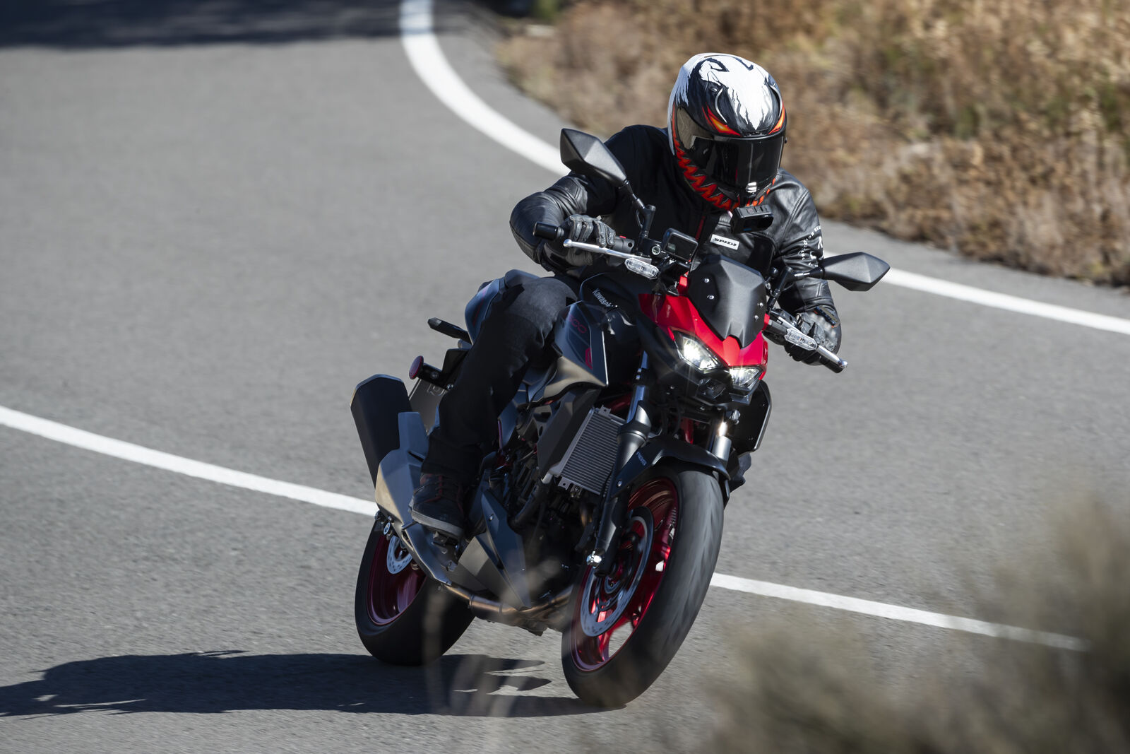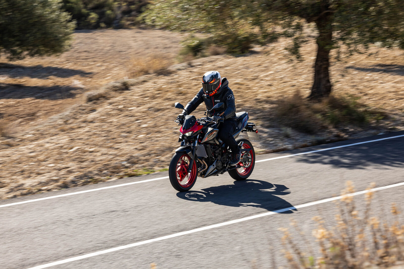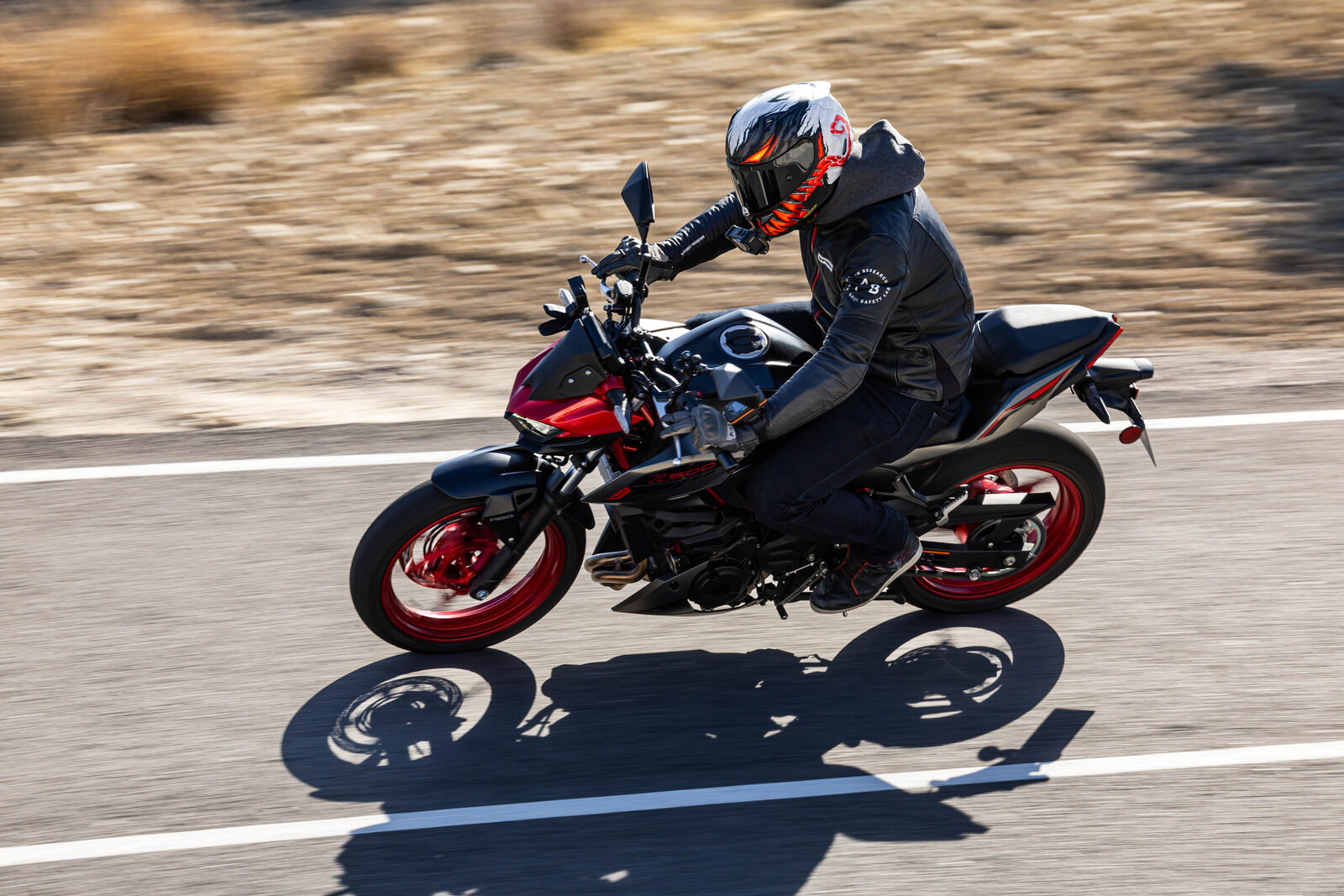 Ein Bike zu fahren, das sich so spielerisch und agil anfühlt, ist eine wahre Freude. Die Z500 meistert jede Alltagssituation mit Bravour und ist auch für längere Touren bestens gerüstet. Dank des perfekt abgestimmten Fahrwerks, welches sogar ohne Upside-Down Gabel auskommt, bietet sie ein Fahrgefühl, das seinesgleichen sucht. Für die Feinabstimmung lässt sich das Federbein in fünf Stufen einstellen. Wer also an diesem Fahrwerk etwas auszusetzen hat, dem kann ich nur schwer folgen. Und wenn wir schon bei der Ergonomie sind: Die Z500 bietet auch größeren Fahrern eine angenehme Sitzposition, während die niedrige Sitzhöhe und der schmale Schrittbogen für eine hervorragende Zugänglichkeit sorgen.