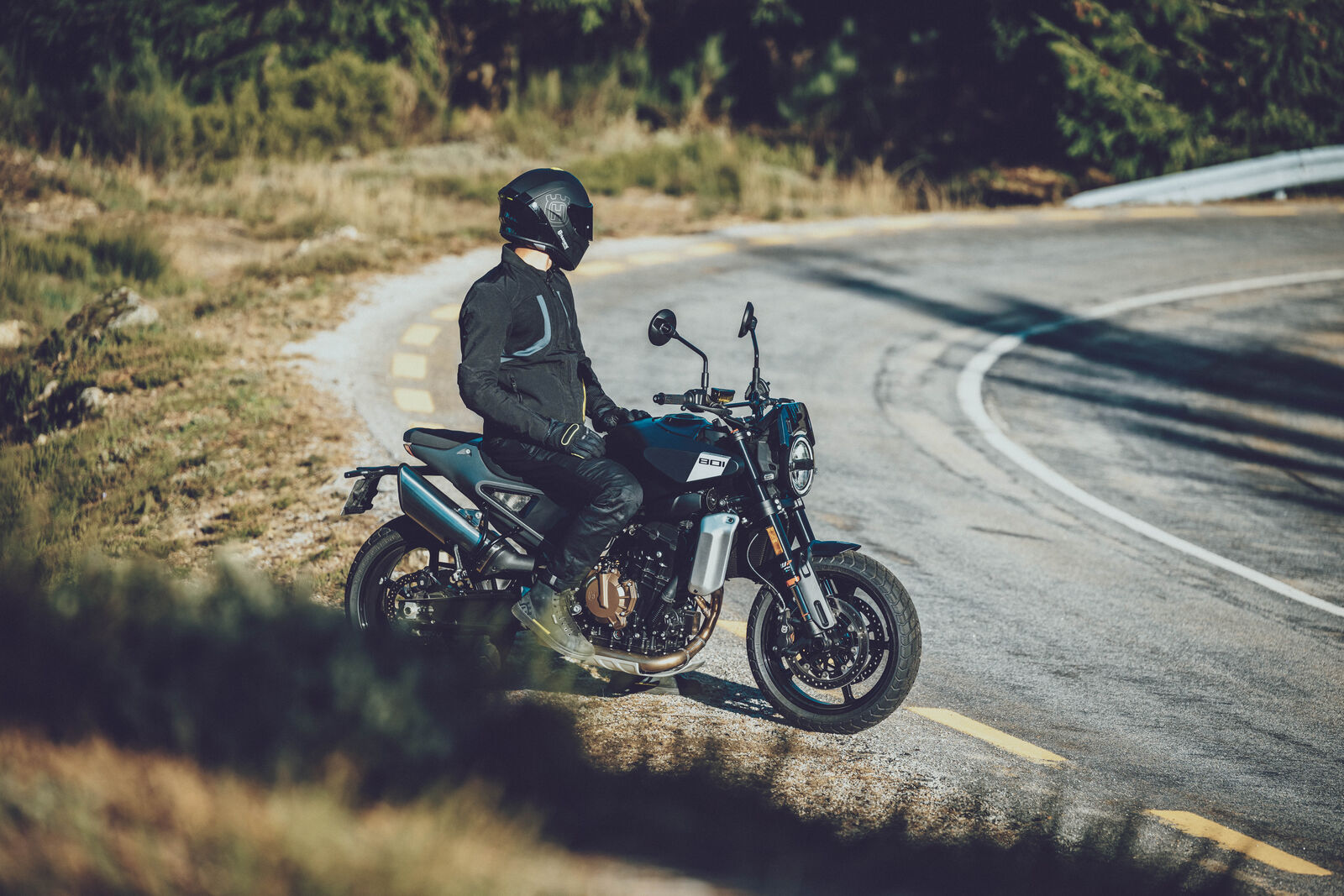 Husqvarna setzt mit der Svartpilen 801 nicht nur technologisch, sondern auch in Sachen Design neue Ideen um. Das Herzstück der Elektronik, das Ride-by-Wire-System, ermöglicht Features wie den Quickshifter, Kurven-ABS und eine Traktionskontrolle, die sich den unterschiedlichsten Fahrbedingungen anpasst. Ein optionales Dynamic Mode Paket bietet euch zudem Schlupfregelung, Anti-Wheelie-Modus und einen Tempomaten – eine wahre Spielwiese für Technikbegeisterte. Besonders hervorzuheben ist das intuitiv bedienbare TFT-Display, das trotz kleiner Schwächen in der Handy-Navigation durch Übersichtlichkeit und Anpassungsfähigkeit brilliert. Auch das Fahrwerk verdient Applaus: Dank der WP Apex-Technologie und dem innovativen Easy-Access-Step-Clickers-System könnt ihr das Setup im Handumdrehen an eure Bedürfnisse anpassen. Was das Design angeht, spaltet die Svartpilen 801 die Gemüter – der eine sieht einen "schwarzen Klumpen", der andere den Inbegriff eines modernen, scharfkantigen Scramblers. Doch eines ist sicher: Mit ihrem markanten Aussehen und der beeindruckenden Länge zieht sie alle Blicke auf sich.