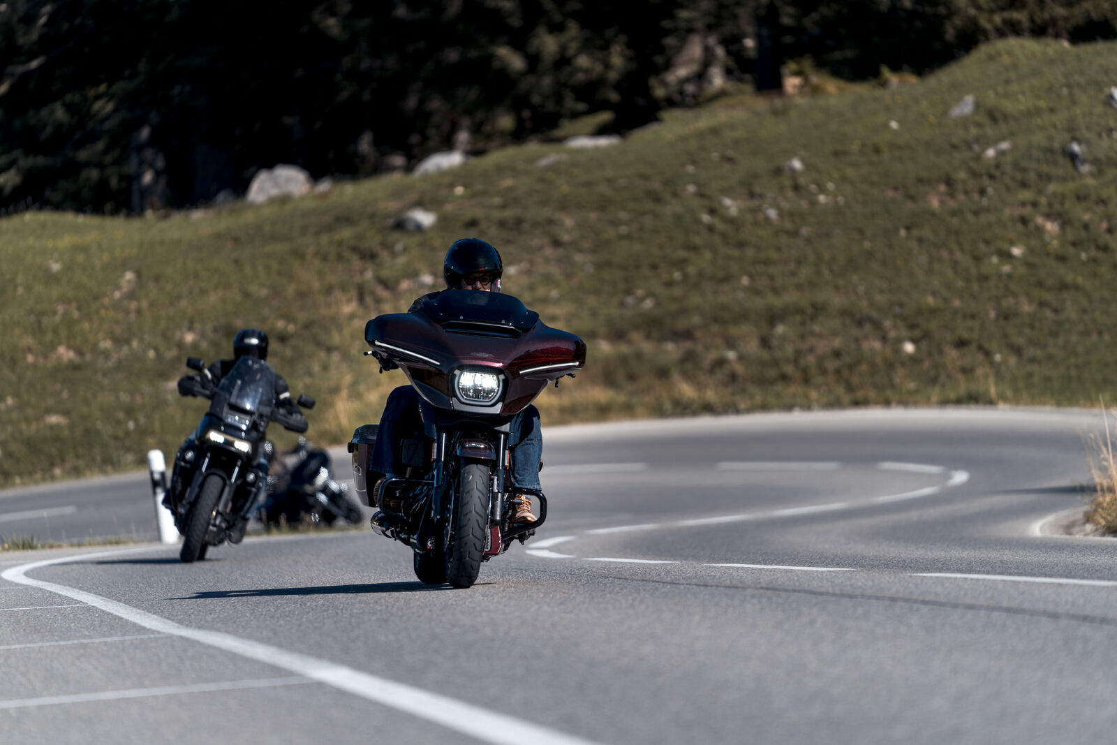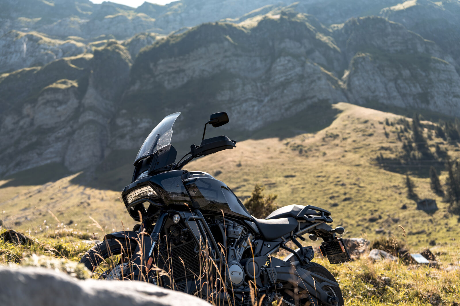 Neben der Pan America standen noch drei Harley-Davidson CVO (Street Glide & Road Glide) Modelle bereit. Interessanterweise sind die Verkaufszahlen von Harley-Davidson in der Schweiz überdurchschnittlich hoch. Kein Wunder, denn mit 80 km/h auf den Landstraßen ist ein Supersportler mit 200 PS nicht wirklich in seinem Element – hier entfalten die großen Tourig Modelle von Harley Davidson ihre wahre Stärke.