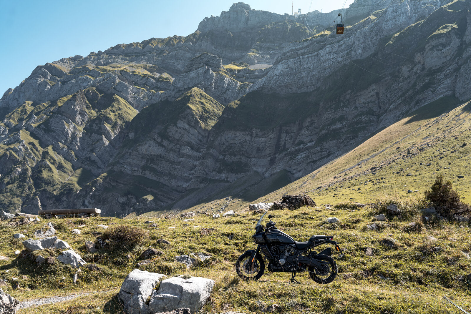 Mit der Harley Davidson Pan America 1250 ging es erstmal von Kärnten nach Zürich. Beim überqueren der Landesgrenze steht schon mal fast der Stift. Hier gilt absolute Vorsicht. Die Geschwindigkeitslimits sind etwas Gewöhnungsbedürftig. 80km/h gilt auf Landstraßen, 120km/h auf Autobahnen. Ein Kunstgriff mit der 152PS starken Pan America. Erstmals erfüllt der Tempomat seine Funktion. Angehalten möchte man auf keinen Fall werden. Der Schweizer Bußgeldkatalog sollte jedem vorab unbedingt bekannt sein! Trotz der Tempobegrenzungen machten die kurvigen Landstraßen und die beeindruckenden Ausblicke die Anreise zu einem Erlebnis, das man selten so intensiv erlebt.