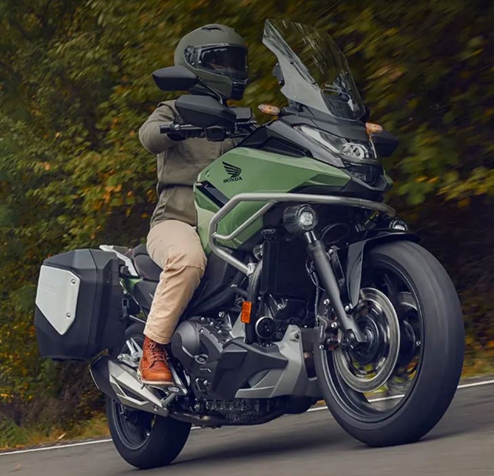Die NC750X bietet ein ausgewogenes Fahrwerk, das sowohl im städtischen Verkehr als auch auf längeren Strecken für hohen Komfort sorgt. Mit einem Federweg von 120 mm und einer Sitzhöhe von nur 800 mm ist die Maschine für Fahrer aller Körpergrößen geeignet. Die aufrechte Sitzposition und der gute Wetterschutz machen sie zu einem angenehmen Begleiter für jede Fahrt. Die Teleskopgabel ist einfach, aber ausreichend für den Alltagsgebrauch. Dennoch könnte ein sportlicherer Fahrer schnell feststellen, dass die Schräglagenfreiheit und das Feedback in anspruchsvollerem Terrain begrenzt sind. Ein Tempomat wäre hier ein wünschenswertes Feature gewesen, um längere Fahrten noch komfortabler zu gestalten.