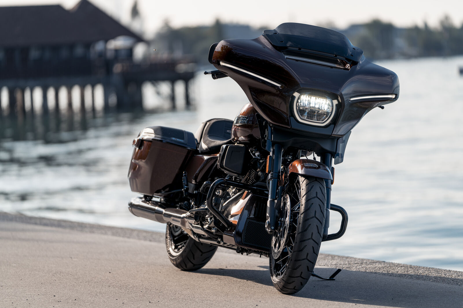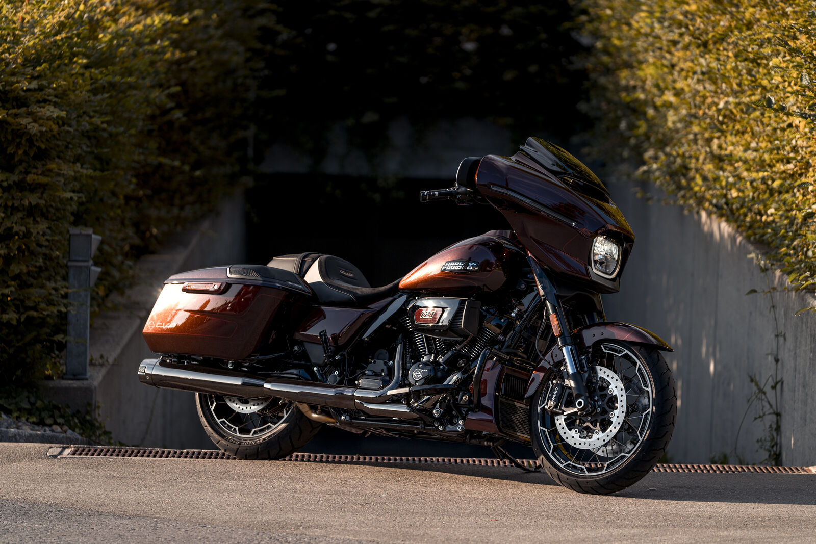 Die Harley-Davidson CVO Street Glide 2024 ist ein einzigartiger Chopper, der mit einem leistungsstarken 1977 ccm Zweizylinder-Viertakt-45°-V-Twin-Motor ausgestattet ist. Mit einer Leistung von 117 PS und einem beeindruckenden Drehmoment von 183 Nm bei 3500 U/min bietet sie sowohl kraftvolle Beschleunigung als auch ein entspanntes Fahrgefühl auf langen Strecken, was sie zu einer idealen Wahl für Touring-Fans macht.