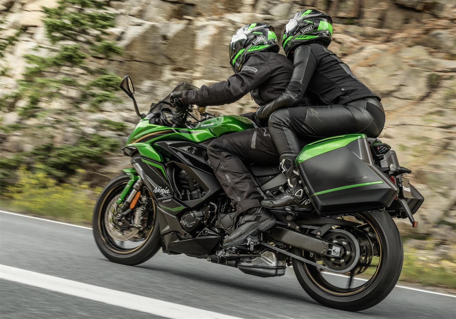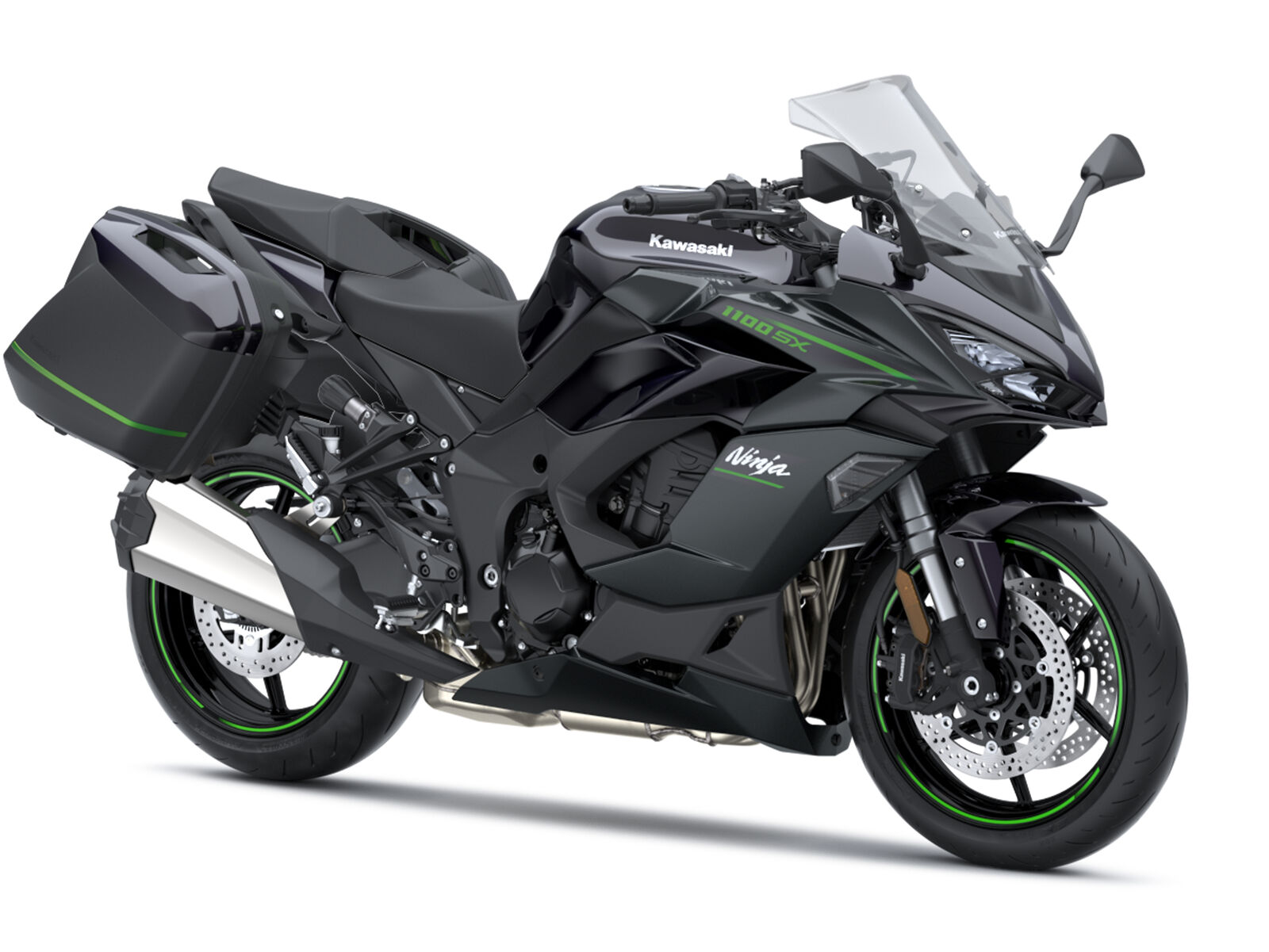 Die Kawasaki Ninja 1100SX 2025 ist in zwei ansprechenden Farbvarianten erhältlich: Metallic Carbon Gray/Metallic Diablo Black und Emerald Blazed Green/Metallic Diablo Black. Diese Farben unterstreichen die sportliche und dynamische Optik des Motorrads.