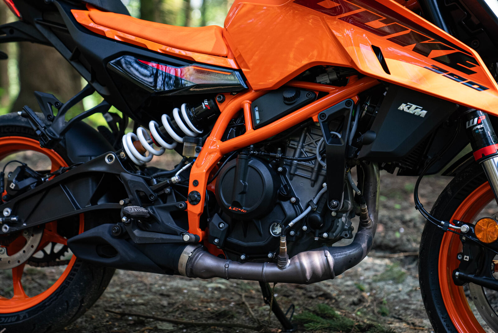 Mit einem Gewicht von nur 165 kg ist die KTM Duke 390 2024 äußerst handlich und wendig. Dieses geringe Gewicht trägt zu einem agilen Fahrverhalten bei, was besonders in kurvenreichen Abschnitten und im Stadtverkehr von Vorteil ist, ohne dabei an Stabilität bei höheren Geschwindigkeiten einzubüßen.