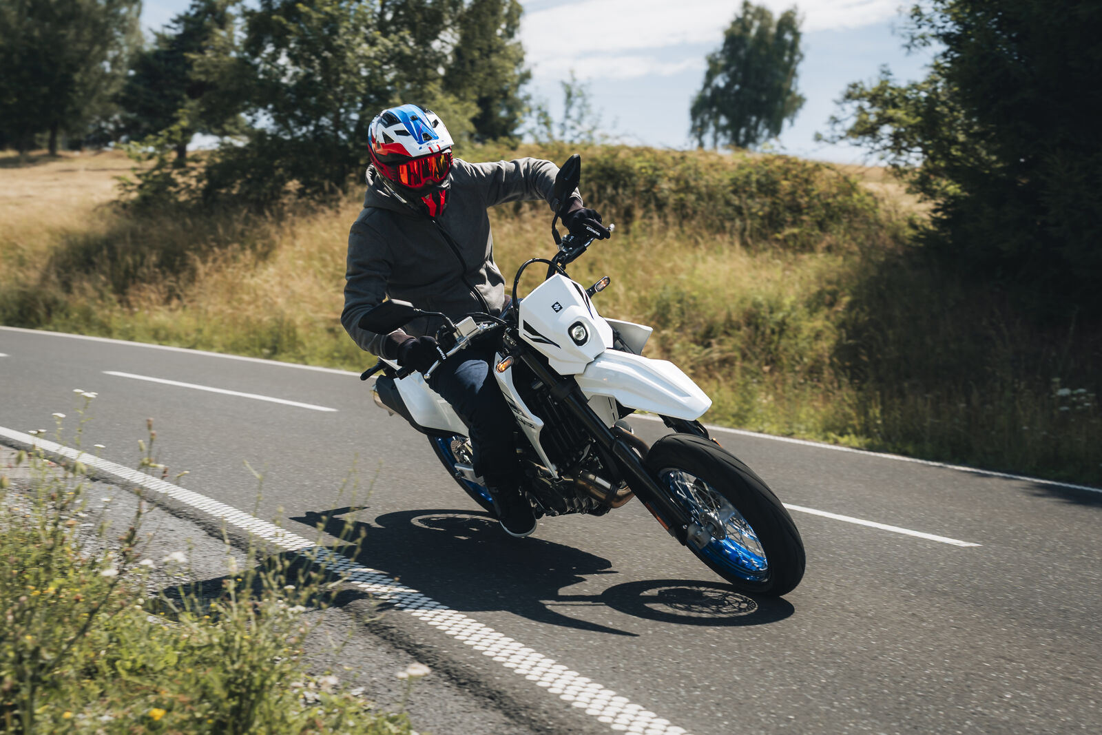 Die Suzuki DR-Z4SM 2024 ist ein dynamisches Supermoto, das sich ideal für A2-Fahrer eignet. Sie kombiniert die Wendigkeit eines Leichtmotorrads mit der Leistung eines kraftvollen 398cc Einzylinder-Motors, der 38 PS bei 8.000 U/min liefert. Mit einem sportlichen Design und einer komfortablen Sitzhöhe von 890 mm ist sie sowohl für Einsteiger als auch für erfahrene Fahrer eine ausgezeichnete Wahl.